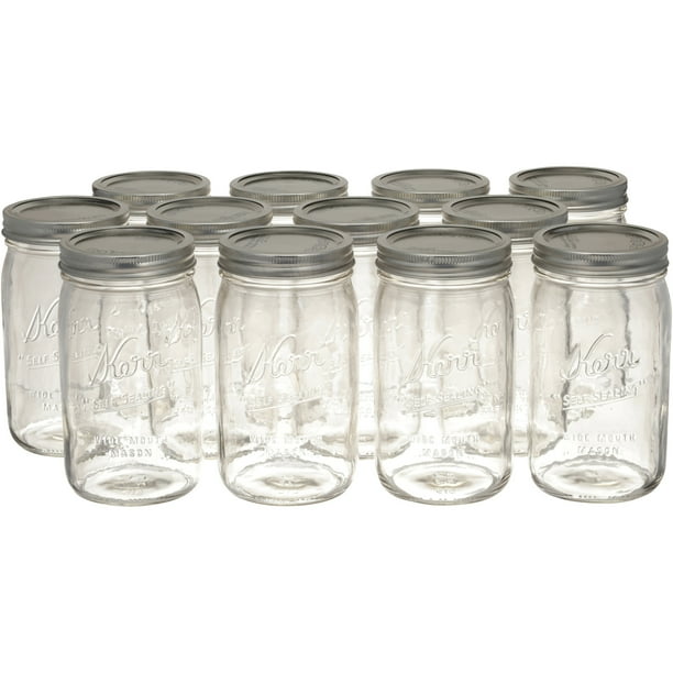 Kerr Glass Mason Jar With Lids And Bands Wide Mouth Clear 32 Oz 12 Count Walmart Com